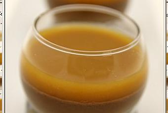 C'est toujours une recette de mon livre sur les pannas cotta. J'ai légèrement modifié cette dernière en diminuant la quantité de gingembre, de cacao et remplacé la gélatine par de l'agar agar.