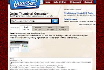Thumboo est un générateur de miniatures de sites en ligne. 4 formats sont proposés :