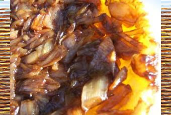 Tatin aux échalotes Recette pour : 4 pers Préparation : 20 mn Cuisson : 1 h 10 mn Il faut :1 rouleau de pâte feuilletée 500 g d'échalotes épluchées 50 cl de lait 40 g de beurre salé = 10 g pour le moule 3 càs de sucre en poudre 2 càs de vinaigre balsamique poivre et selPréparation :Selon la recette faire bouillir le lait Pelez les échalotes puis les faire blanchir 10 mn dans le lait bouillant * cette version me plaisant qu'à peine j'ai fait cuire pendant 10 mn mes échalotes épluchées et coupées en lamelles au cuiseur vapeur Egouttez les échalotes sur du papier absorbant Faites fondre le beurre avec le sucre dans une cocotte en fonte , puis joutez les échalotes et le vinaigre balsamique , laisser ainsi confire sur feu doux 40 mn Versez ces échalotes confite au balsamique dans un moule à tarte légèrement beurré Recouvrez de la pâte feuilletée Enfournez pour une cuisson de 20 mn four préchauffé à 180 °