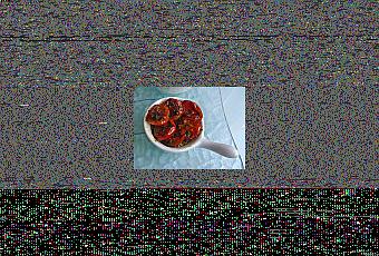 m Dans une petite coupelle, mettre une cuiller à soupe de sauce au pistou.