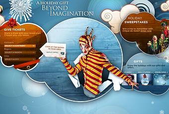 A l’occasion de noël, le Cirque du Soleil propose un site événementiel qui permet aux internautes de gagner des voyages, envoyer des cartes de vœux gratuites, …