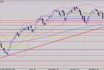 Cette structure baissière nous l'avons par le biais de ce grand marubozu noir (qui s'apparente à un passant de ceinture) qui a franchi le support des 3725 points et qui repose sur le support immédiat des 3677 points.