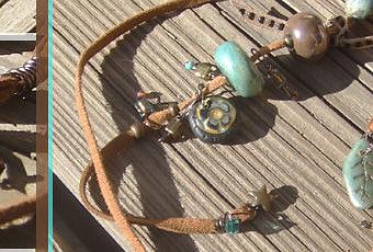 D'abord avec un collier 2 en 1, monté sur lien cuir et perles patinées.