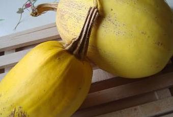 Elle doit son nom à sa chair qui se transforme en cuisant en filaments qui rappellent les spaghettis. Elle est de forme ronde à ovale et son écorce varie du blanc crème au jaune. Sa peau jaunâtre est lisse et moyennement dure et possède une saveur très agréable appréciée aussi par les enfants.