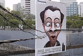#pub: belle idée pour l’affiche urbaine Panasonic ‘tondeuse de poil de nez’ en Indonésie. http://bit.ly/8BIzOG