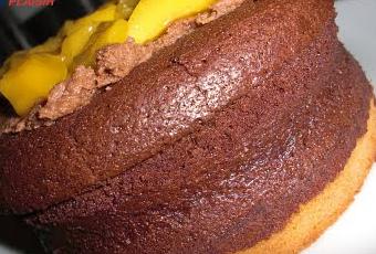 - finition: Faire fondre le chocolat caramel et napper le dessus du gâteau puis parsemer de petits cubes de mangue.