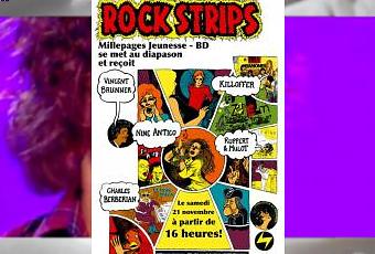 Mais c'était plutôt samedi 21 novembre à la librairie Millepages BD Jeunesse de Vincennes à partir de 16h. Six des trente-trois illustrateurs de la BD Rock Strips aux éditions Flammarion étaient réunis pour vous la présenter. L'idée assez originale est de présenter les grands noms du rock, les signatures du rock des Stones en passant par les White Stripes, Nirvana, Elvis, Pink Floyd, Hendrix et même les Beattles dans le cadre noir et blanc de différentes histoires sous la direction de Vincent Brunner (journaliste presse musicale et écrivain français).