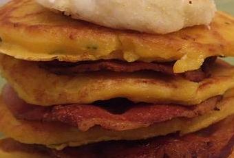 Déposer un grosse cuillère de pâte dans un une poêle huilée et bien chaude. Faire dorer les galettes quelques minutes de chaque côté. (j'ai fait 8 galettes) Simultanément faire dorer les tranches de pancetta et les petits chèvres chauds.