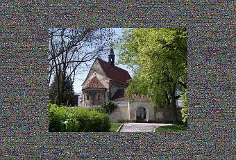 Notre 3 ème église donc ressemble à la 1 ère, genre rectangu l'air de 13 x 8 m, terminée par une abside hémicyclique (notez qu'icelle est couverte par un toit séparément du reste du bâtiment). En 1273, le patelin comme l'église seraient passés sous la possession du monastère de "Strahov" (cf. la fameuse bulle pontificale que je n'ai pas retrouvée "Anno Domini MCCLXXIII: papa Gregorius decimus, Episcopus Romanus, suis bullis gratiosis confirmavit et ratificavit..."). Ensuite pas grand chose, sinon qu'un document de 1352 (pas retrouvé) indique que l'église est pas roissiale. Du coup l'on présume que les moines de "Strahov" l'auraient louée pour se faire du pognon, parce qu'en 1397, un privilège (pas retrouvé non plus) de l'ivrogne "Václav IV" confirme la possession du patelin par le monastère. Bref, puis ça devient compliqué. En 1420, les Praguois (hussites) vandalisent et mettent à feu "Strahov", puis confisquent les biens du monastère (et pas que de celui-là) qu'ils vandalisent à souhait également.