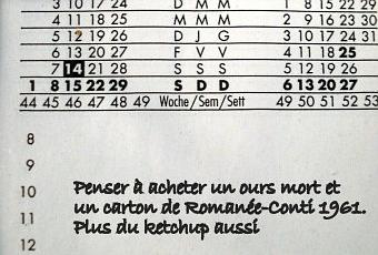 Page d'agenda du 14 novembre 2009. Dans la série "les objets de rien et du quotidien".