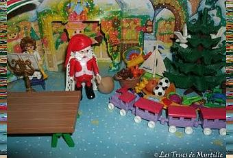 Un petit décor avec les Playmobil à côté du calendrier de l'Avent