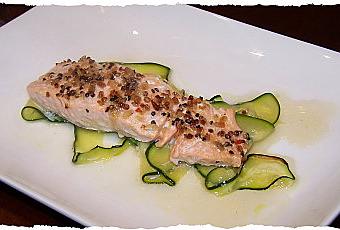 Coupez en tranche très fine à l'aide d'une mandoline la courgette.
