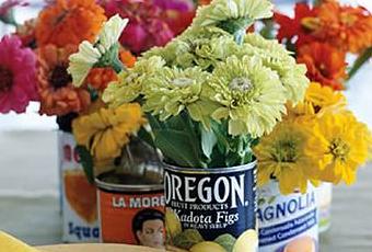 Je suis en pleine phase créative. En ce moment j'écris des chansons, je fais de la photo, de la couture (je suis en train de me faire un dossier de lit incroyable, je vous montrerez quand ce sera fini). Je déménage bientôt et j'ai vraiment envie de changer de décor (sans pouvoir investir dans ce qui me plairait tant)... Bref, le temps des lamentations est over et je vais faire comme sur cette photo, recycler des jolies boites de conserves pour en faire des vases pour ma prochaine cuisine. Un rien m'enchante en ce moment !!! Nice???
