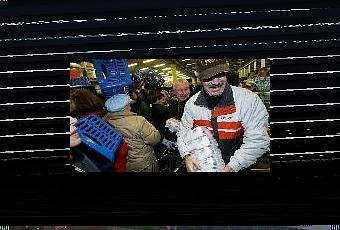 Dés l'ouverture ils étaient prêts à bondir dans le magasin pour s'arracher ces kilos de sucre- heureusement personne n'a été blessé. Seulement 20 minutes après l'ouverture des portes, les clients avaient vidé le magasin de 4 tonnes de sucre!!! Sans compter les paquets déchirés répandus sur le sol lors de la bousculade...