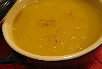 Voilà de quoi vous réchauffer, tant par la chaleur de la soupe que par celle des épices qui la parfument! Cette recette, dénichée chez Gourmandelise, nous a vraiment convaincus! Ce velouté est absolument délicieux. Vous pouvez bien sûr réduire la quantité d'épices si vous voulez obtenir un mélange plus doux.