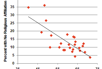 Mais dans tout ça, quelques chiffres laissent songeur. Spécifiquement, ceux qui sont décrits dans le graphique qui ouvre ce message. Crainte d'une attaque contre la laïcité, ce vote anti-minarets ? Pas évident du tout. Regardez ce graphique. En fait, il semble que plus on pratique une religion (et en général elle est chrétienne), plus on a accepté l'initiative... Plus la population d'un canton est fortement 'sans affiliation religieuse' et plus la proportion de personnes ayant rejeté l'initative est forte. En apparence du moins, ce ne serait donc pas tant l'identité suisse que l'identité chrétienne qui se serait sentie menacée. Pour les curieux, la source est ici et les chiffres peuvent être récupérés sur le site de l'Office Fédéral de la Statistique.