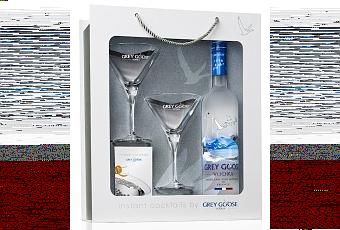 Voici une idée cadeau qui devrait faire plaisir aux amateurs de vodka Grey Goose : le coffret cocktail vodka Grey Goose, un très beau coffret cocktail dans lequel vous trouverez deux verres martini sérigraphiés, une bouteille de vodka Grey Goose 70 cl et un livret de recettes cocktail.