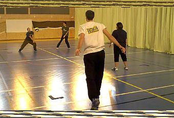 Du coup, nous avons testé l'installation de 3 terrains. Cette fois (contrairement a la fois avec 2), nous avons eu la place suffisante pour jouer dans de bonnes conditions.