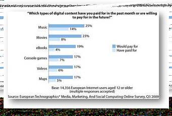 Au niveau de la musique 14 % des sondés (11 % des sondés français) déclarent avoir déjà payé pour s'en procurer sur le net et 25 % (28 % des Français) envisagent de le faire dans l'avenir. Soit environ deux fois plus que maintenant.