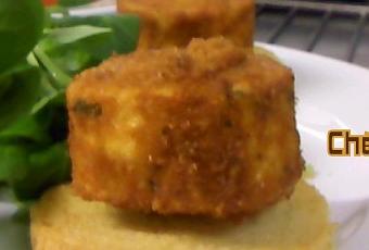de la mâche (4 petites poignées lavé égoutté)2 tomates en quartiers2 bûchettes de chèvre12 tranches de pain de mie1 oeuf3cl d'huile d'olive50gr de farine