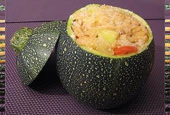 5) Laissez revenir le tout 5 minutes puis servir chaud dans les courgettes rondes vidées. Saupoudrez de parmesan et refermez le chapeau pour que cela reste au chaud.