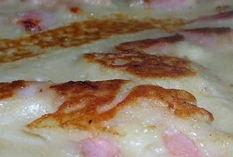 Et voilà on arrive dans la région où j'habite. Et comme je ne suis pas originaire d'ici j'ai fais des découvertes. La première avec cette sorte de crêpe aux lardons assez sympa pour un dîner.