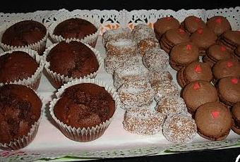 Voici un plateau de douceur que j'ai offert a des amies pour accompagnés leur café...des muffins au chocolat saveur noisette, avec des pépites de chocolats. Ensuite, des caramel saveur orange enrobés de noix de coco et en dernier des macarons tout chocolats.