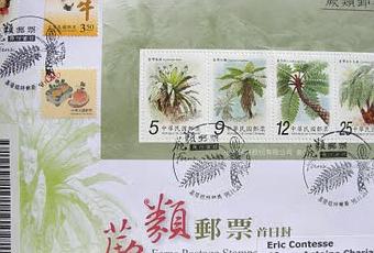 Ces 4 timbres, émis également séparément, représentent 4 espèces de fougères :- Asplenium nidus (5 NT$), également appelée fougère nid d'oiseau, peut pousser sur des troncs d'arbre et est très souvent utilisée comme plante ornementale.