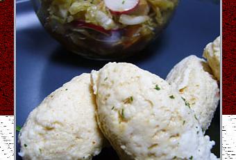 Lors de l’atelier auquel j’ai assisté il y avait aussi ces petites quenelles de volaille. Je les ai refaites en modifiant un peu la recette d’origine car je les avaient trouvé un peu fade. Pour votre gouverne c’est P’tit Chef qui à réalisé les quenelles ce n’est pas très compliqué une fois qu’on a pris le coup de main. Ma sauce n’était pas suffisamment épaisse mais avec un peu de maïzena à la place de l’agar agar la rendra plus nappante.