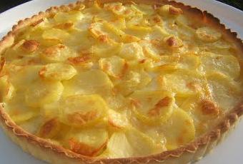 Tarte aux pommes de terre et reblochon Recette pour : 6 pers Préparation : 25 mn Cuisson : 40 mn à 180 ° Il faut :Pour la pâte brisée ( je fais toujours mes pâtes à tarte ; sauf la pâte feuilletée trop longue à préparer ) ou prendre une pâte brisée toute prête du commerce 200 g de farine 100 g de beurre 2 cl d'eau 2 à 3 g de sel Pour la garniture500 g de pommes de terre 1/2 reblochon 20 g de beurre sel et piment doux d'Espagne Préparation :Réaliser la pâte brisée et la mettre en boule , la filmer et la déposer au réfrigérateur 1 heure Eplucher les pommes de terre les couper en fines rondelles puis les cuire 10 à 15 mn au cuiseur vapeur ( dans la recette les cuire 15 mn dans une poêle avec 4 càs d'huile )Etaler au rouleau la pâte brisée puis la déposer dans un moule à tarte beurré et en piquer le fond à l'aide d'une fourchette Eplucher le fromage puis le couper en lamelles que vous déposerez sur le fond de tarte Recouvrir le fromage des rondelles de pommes de terre saler tout léger et ajouter une pincée de piment doux d'Espagne ou de poivre du moulin Déposez quelques noisettes de beurre sur celles-ci Enfournez four préchauffé à 180 ° pour une cuisson de 35 à 40 mn Cette tarte vaut largement le détour .....