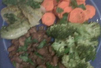 Grosse envie de légumes, heureusement satisfaite de façon improvisée par un beau quatuor, origine le frigo, le congélateur et le marchand de légumes. Soit des brocolis, des carottes, des champignons de Paris, de la salade cuite. Avec sel, poivre, persil plat et un filet d'huile d'olive, je me suis régalée. Et ne croyez pas que ce soit aussi cher et long à préparer qu'on l'imagine souvent. Ce plat revient à environ 2 euros par personne et est prêt en quinze minutes tout compris.