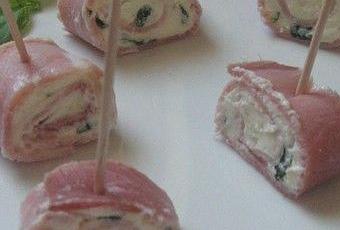 Hacher la gousse d'ail et le basilic et bien mélanger avec le reste des ingrédients. Etaler sur des tranches de jambon, les rouler très serré. Recouvrir de film alimentaire et mettre au frais 1h30 à 2 heures.