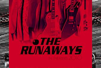 Affiche teaser premier du film biographique « The Runaways». En utilisant le rouge comme couleur majeure, l’affiche ne donne pas un coup d’oeil à l’un des personnages, mais les jambes des membres du groupe et trois guitares. De plus, basée sur l’image, il est connu que le film n’a toujours pas de date de sortie exacte car c’est mentionné que le film atteindra les théâtres en 2010.