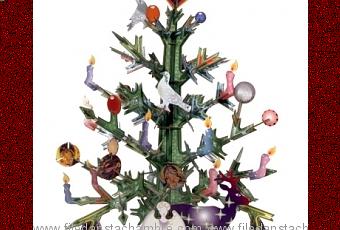 Non mais regardez-moi ce sapin de Noël en carton recyclé. On fait des choses folles maintenant. Celui-là je l'ai trouvé sur le site de file dans ta chambre. Ce magnifique objet de création, orné de bougies colorées, de blanches colombes et d'anges trônera tel un Roi de notre maison. Et bien sûr ce puzzle 3D se démonte et se remonte au fil des années !