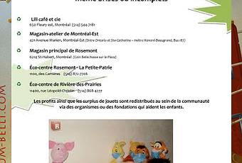 Pour les lutins verts, c'est un organisme qui collecte et redistribuent les jouets en les revendant à faible prix. L'organisme valorise le réemploi et le recyclage dans une perspective de sensibilisation et d'éducation au respect de notre environnement tout en proposant des emplois durables de qualité à des personnes en rupture avec le marché du travail.Les profits ainsi que les surplus de jouets sont redistribués au sein de la communauté via des organismes ou des fondations qui aident les enfants.Tous les produits utilisés pour laver les jouets sont non toxiques et écologiques. http://technorousseau.blogspot.com