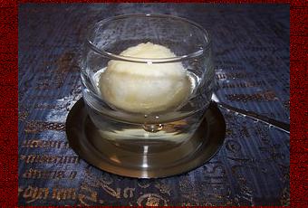 Servir le sorbet à la pomme arrosé d’1 ou 2 c. à s. de Calvados.