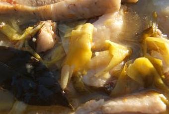 Tendrons de veau aux agrumes Recette pour : 6 pers Préparation : 20 mn Cuisson : 1 h 20 mn Il faut:1.5 kg de tendrons de veau 1 citron jaune 1 citron vert 1 orange 3 poireaux 2 oignons 1 branche de céleri 1 bouquet garni 20 cl de vin blanc 4 càs d'huile 20 cl d'eau2 cubes de bouillon de volaille sel et piment doux d'Espagne1 càs de beurre manié pour lier la sauce Préparation :Peler et émincez les oignons Lavez les agrumes , prélevez leur zeste et hachez-le pressez les agrumes pour en récupérer le jus Laver soigneusement les poireaux et la branche de celeri puis les couper en tronçons Dans une cocotte en fonte chauffez l'huile et faites-y fondre les oignons émincés , y ajouter ensuite les tendrons de veau et faites-les dorer de tous cotés , saler et poivrer Ajoutez les poireaux , le celeri , le bouquet garni et les cubes de bouillon , mouiller avec le vin blanc et 20 cl d'eau Parsemer des zestes d'agrumes , couvrer et laissez mijoter 1 heure Retirez les tendrons de veau et les légumes de la cocotte les disposeer dans un plat que vous réserverez au chaud Délayer la càs de beurre manié dans le jus de cuisson puis ajoutez le jus des agrumes Portez lentement à ébullition et faites épaissir en mélangeant au fouet Nappez la viande de cette sauce Servez de suite j'ai accompagné ce plat de riz basmati
