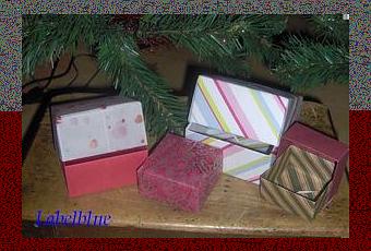 Voici quelques boîtes réalisées à partir d'un tuto que vous trouverez en lien en cliquant sur la photo (si ça marche, sinon et bien je n'aurai plus qu'à modifier mon article !)