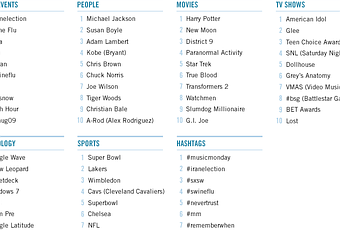 Quels sont les sujets ont qui été le plus abordés, débattus… sur Twitter en 2009. Le décès de Mickael Jackson, la grippe H1N1 ? Oui, mais pas seulement, selon le blog officiel du site de microblogging. Pas de trace de la crise ? On peut en tous cas constater que ce Top est essentiellement anglo-saxon.