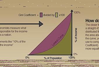 La courbe de Lorenz comme on le voit sur ce graphique indique l'écart entre une distribution des revenus parfaitement égalitaire (10 % de la population obtient 10 % du revenu total, ici sur le graphique, c'est la "diagonale" qui correspond à la droite d'équirépartition).