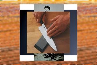 Les couteaux japonais ne seraient pas les couteaux japonais sans leur pendant incontournable, les pierres d'affûtage japonaises. Les couteaux ont été conçus dès le départ en tenant compte du fait qu'ils doivent s'améliorer au fur et à mesure et non se dégrader dès le premier emploi (angles les plus fins possibles pour être presque à plat - repère longitudinal - et aciers adaptés à cet affûtage même de novices). Au Japon des pierres à eau naturelles ont toujours été employées jusqu'à l'extinction des gisements mais depuis deux décennies celles-ci sont majoritairement en pierre artificielle reconstituée à base de particules d'oxyde d'aluminium, l'alumine, au pouvoir abrasif identique au quartz des anciennes pierres naturelles. L'alumine est ensuite solidifiée dans des fours électriques pour devenir de la céramique, plus dure que le métal. Vous trouverez sur le site de Chroma France de nombreux tuyaux et une vidéo de démonstration d'aiguisage pour apprendre les gestes de base qui ne sont pas compliqués du tout.Il faut juste penser à toujours bien mouiller la pierre à eau et maintenir l'angle ainsi que la planéité de la pierre de temps en temps. Certaines pierres (K11 et K12 de Kasumi) sont livrées à cet effet avec une petite pierre d'appoint appelée "suishi". Sinon, si les déformations deviennent trop importantes on risque de casser le fil lors de l'opération, dans ce cas nous conseillons de polir la pierre avec du papier abrasif à l'eau. Lors de l'aiguisage l'utilisation de toute la surface est conseillée afin de ne pas creuser la pierre.