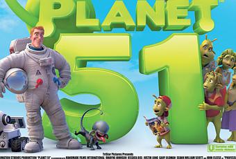 Planet 51 est un superbe dessin animé pour toute la famille. Le film que l'on doit au scénariste de Shrek, et réalisé par Jorge Blanco, narre les péripéties de Capitaine Charles "Chuck" Baker, un astronaute américain qui "atterit" sur la planète 51, croyant être le premier à poser le pied sur ce sol inconnu. A sa grande surprise, il découvre qu'elle est peuplée par un population de petits hommes verts habitant dans un monde minuscule tout blanc, ressemblant très fort à l'Amérique des années 50....et dont la plus grande peur est celle d'être envahis par des "Aliens" cad des terriens, tels que Chuck justement...Avec l'aide de quelques jeunes et d'autres habitants de la Planète 51, Chuck va devoir combattre l'armée anti-aliens locale, afin de pouvoir réintégrer sa navette spatiale sain et sauf.
