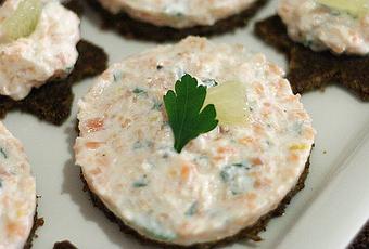 Canapés de Pumpernickel à la mousse de saumon fumé: