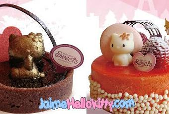 Ils en ont de la chance les clients du café Hello kitty Sweets qui se trouve à Taiwan ! Pour Noël ils peuvent commander l'un de ces deux gateaux Hello kitty qui ont l'air aussi délicieux que beaux , mais uniquement disponibles entre le 24 et 26 Décembre! Saveur chocolat noir 75% pour le premier et framboise-cerise-fromage-vin blanc pour le second.Trois boites remplies de chocolats aux fruits secs sortent également pour ces fêtes de fin d'année.