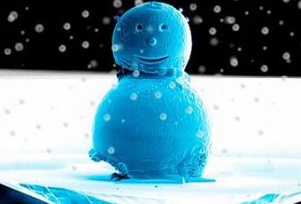 Voici le plus petit bonhomme de neige au monde, il fait seulement un cinquième de l’épaisseur d’un cheveu ! Ce bonhomme de neige a été créé par le National Physical Laboratory en utilisant des outils destinés à la manipulation de nanoparticules. Ils ont soudé deux minuscules perles d’étain en se servant de petits dépôts de platine pour faire le corps et la sonde ionique focalisée lui a permis de graver les yeux, le sourire et de mettre en place son nez en platine. Il a ensuite été amplifié par une lumière bleue qui donne cette image d’un bonhomme de neige presque réel =) .