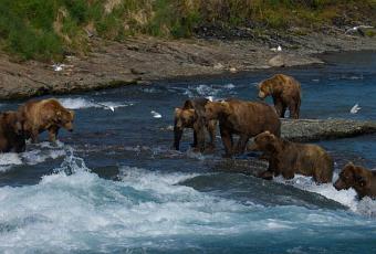 Voilà une autre photo qui va directement sur le Concours ! Alan Corbett nous a envoyé ces ours en peluche juste à temps pour Noël ! « C’est super de pêcher en Alaska. Il y a plein de saumons, plein de place et plein d’ours ! Voilà une photo que j’ai prise sur la côte du Katmaï sur la rivière McNeill. Alors qu’en premier j’avais été là bas pour prendre des photos, j’ai quand même réussi à lancer quelques mouches et prendre du poisson. En fait les ours étaient tellement occupés à bouffer, qu’ils m’ont foutu la paix! »