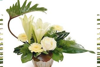 Un petit arrangement blanc et vert d'un style résolument moderne.