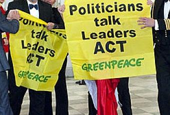 Par ailleurs, quatre militants de Greenpeace sont actuellement emprisonnés au Danemark et mis à l’isolement sans jugement jusqu’au 7 janvier. Leur « crime » ? Avoir manifesté de façon non-violente une opinion largement partagée et brandi des banderoles portant le message « Les politiciens parlent, les leaders agissent ! », le 17 décembre, dans le palais de la Reine du Danemark, lors du dîner de gala organisé pour les chefs d’État.