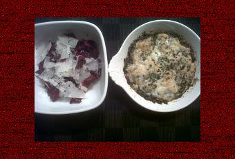 Mercredi soir, un repas tout légumes bien savoureux : des épinards qu'on pourrait dire à l'italienne : avec sauce tomate, mozzarella, aromates et légèrement gratinés, une merveille ! Ils étaient accompagnés d'une salade de trévise au pecorino (fromage de brebis italien). Tout cela était fameux et de saveurs originales.