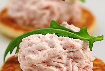 Réserver au frais (la veille pour le lendemain éventuellement) et dresser sur les blinis légèrement tièdes.